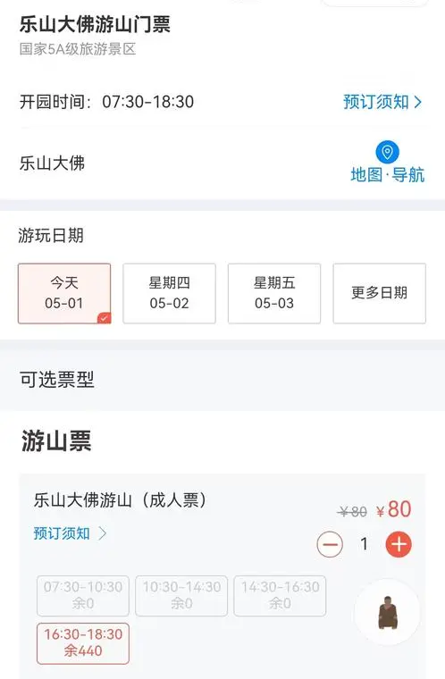乐山大佛景区 5月1日白天游山门票已售罄 5月2日游山门票仅剩16:30-18:30可预约