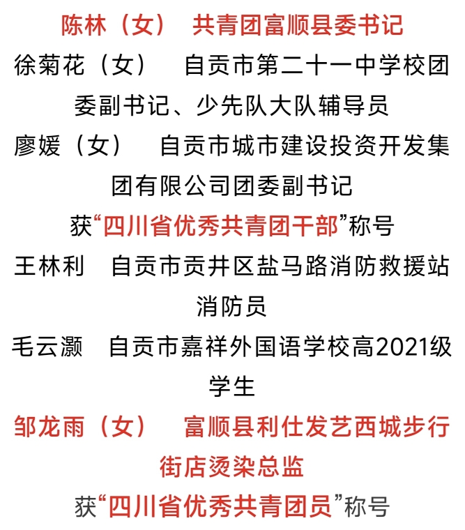 自贡这6人获四川省优秀共青团员(团干部)称号