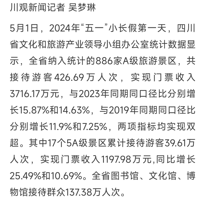 [盐都杂谈] “五一”假期首日,四川A级景区接待游客426.69万人次,自贡…