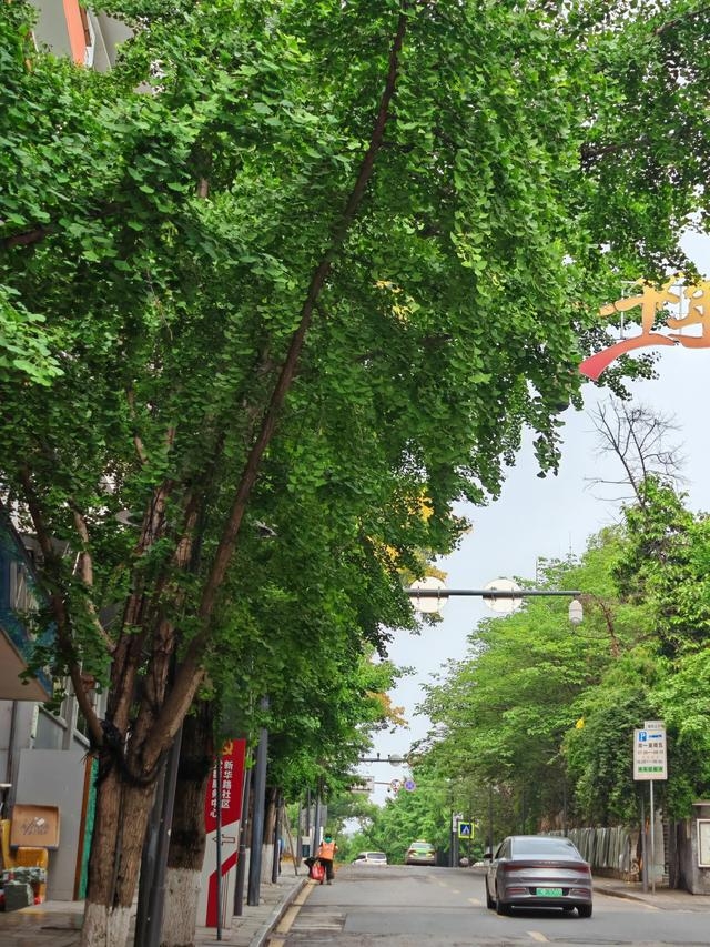 自贡市塘坎上路两边都是高大的银杏树,人称“银杏一条街”。银杏树不仅到了深秋披上“黄金甲”时好看,就是在春天和夏天,银杏树的树叶碧绿碧绿,与众不同,特别精彩!