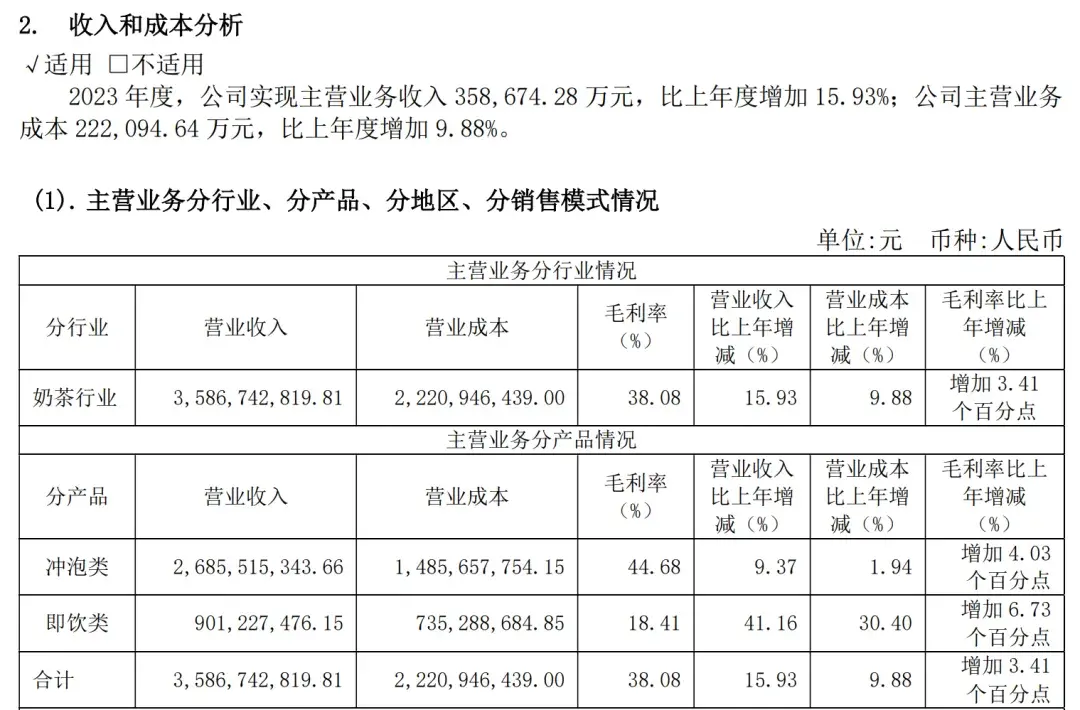 公司主营业务分行业、分产品情况 / 图源:香飘飘2023年年度报告