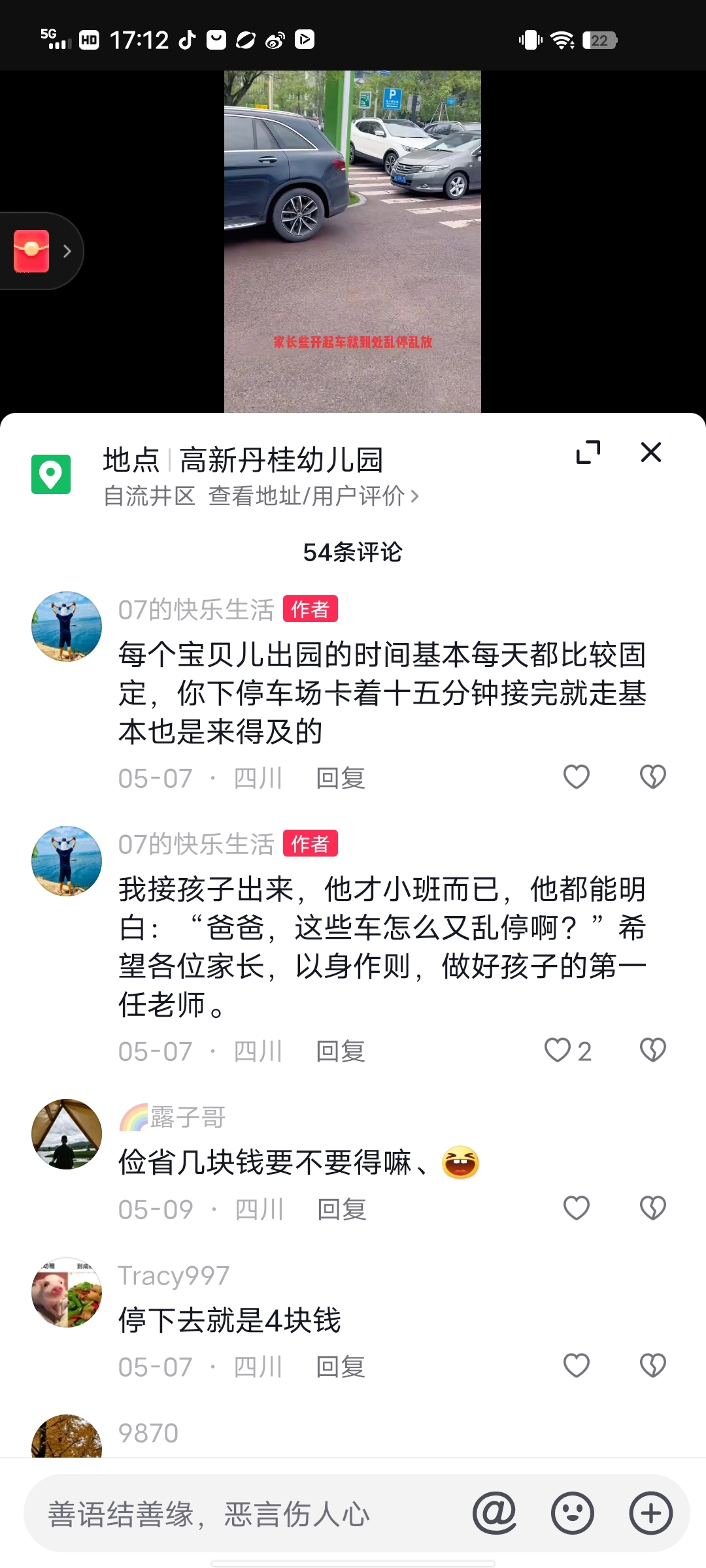 自贡某车主爆料“想进停车场都进不去 真是离谱#曝光不文明行为”