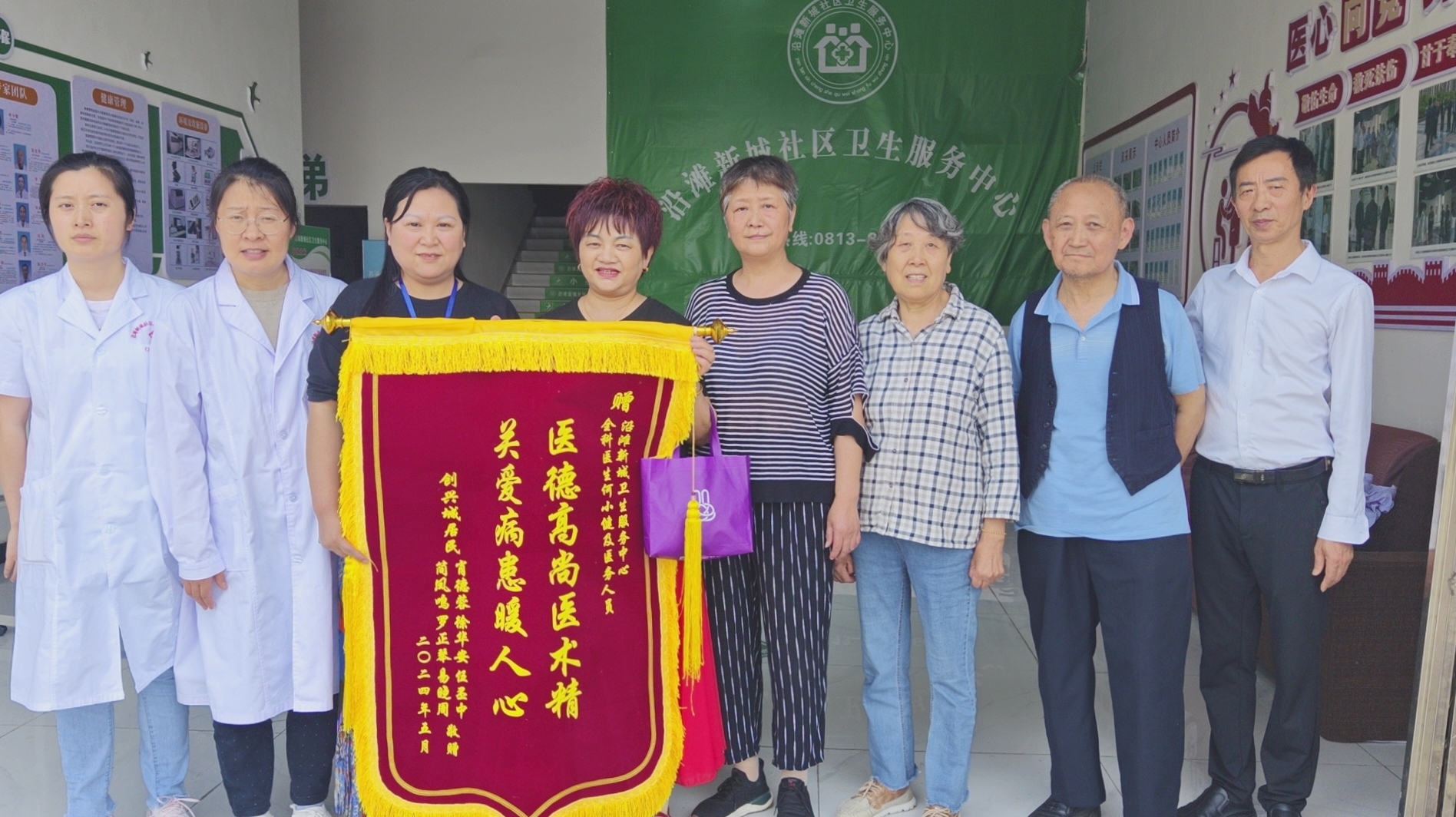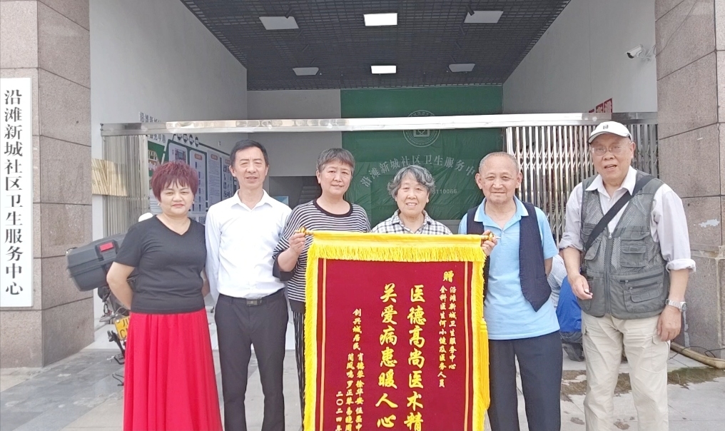 今天创兴城的居民几个病友相约给社区卫生服务中心的全科医生何小健及医护人员送锦旗,感谢他们对病人的关爱,自媒体.自由撰稿人郭老者现埸摄像编辑报导,并在各大网络平台发佈,欢迎大家关注。