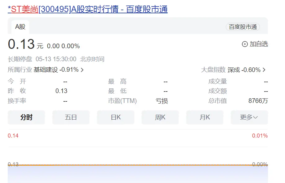 四面楚歌的*ST美尚在资本市场遭遇“滑铁卢”。从历史最高价到整个市场最低股价,*ST美尚用了8年。股票自2024年5月9日(周四)开市起停牌,而其中被套牢的股民有两万多。