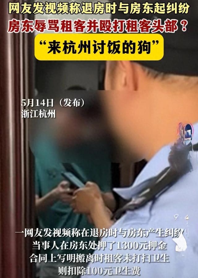 5月14日,有网友发布视频称:在退房时与房东发生冲突,房东辱骂租客并殴打其头部。