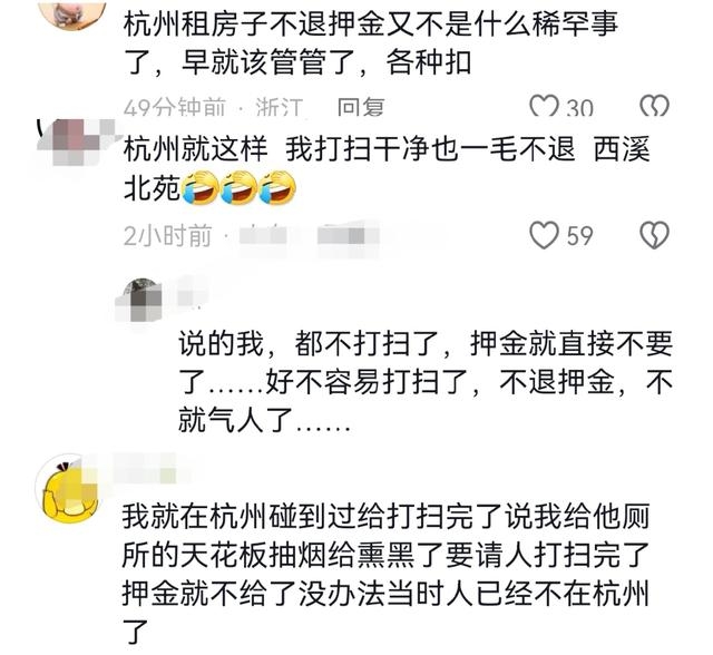 杭州租房不退押金很常见,即便打扫干净了也是一毛不退!很多人都有类似的经历!所以有些人才会选择干脆不打扫了,反正打扫了也不退!