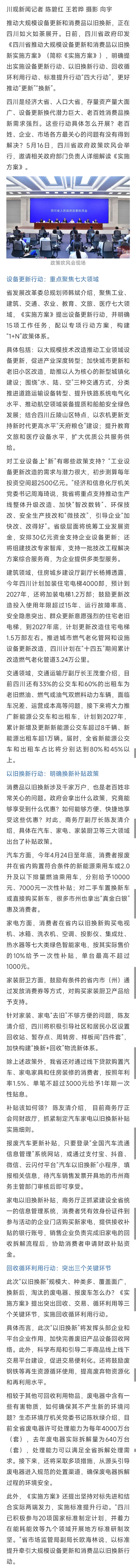 [盐都杂谈] 四川实施“四大行动” 推动大规模设备更新和消费品以旧换新
