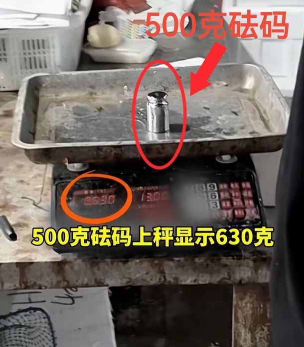 视频显示,狂飙兄弟在一女摊主的摊位上买了一斤爬爬虾,对重量有怀疑,于是拿出准备好的500克砝码搁摊女摊主的秤上一称,竟然称出了630克的重量!