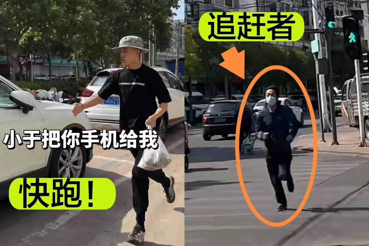 这时对方堵住不让走,于是狂飙兄弟和同伴撒腿就跑,后面有一名男子一路狂追。这简直是现实版的生死大逃亡,惊险万分。狂飙兄弟一边跑,一边要同伴把另外一部手机给他,然后两个人分头跑,视频在这里结束。