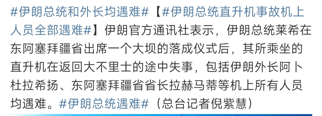 [盐都杂谈] 伊朗总统和外交部部长死于直升机空难。