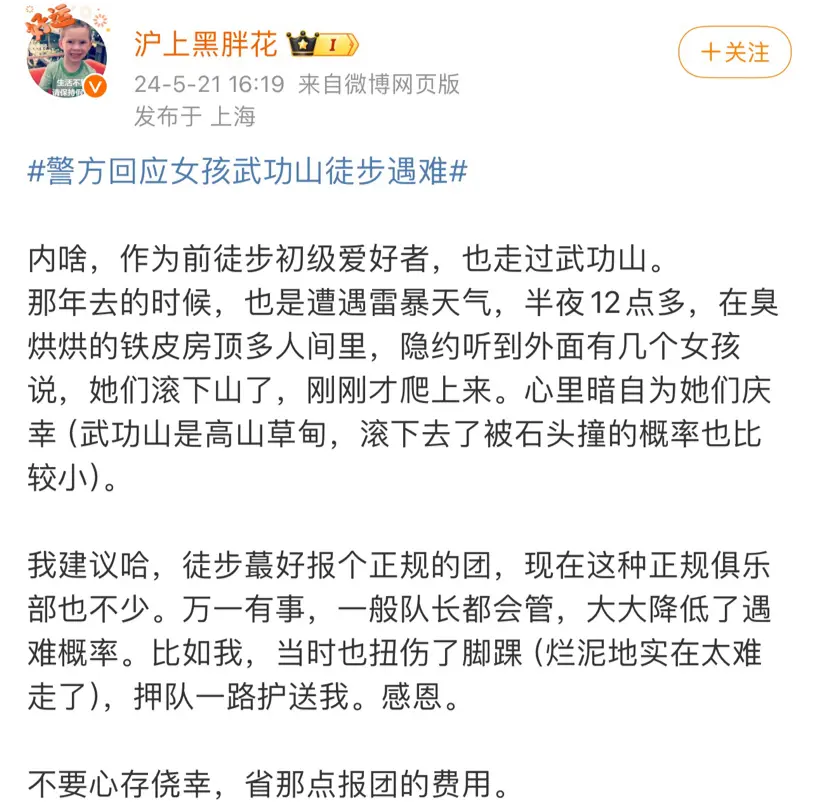 根据媒体报道,这名遇难者完全没有户外经验,这趟上山属于新手之旅。