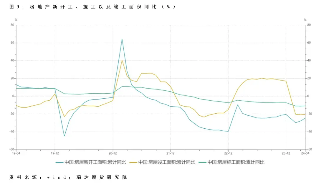从投资角度来看,制造业投资表现优异,但房地产投资前四个月接近10%负增长,新房销售、开工、竣工等指标同比下跌。这也导致了近期新一轮房地产刺激政策加码。一方面,需求端央行主导进一步放松房贷政策,将首套房首付比例降至15%,为历史最低。另一方面,鼓励地方政府购买库存房,转为保障房和租赁房。央行推出3000亿再贷款资金,预计可支持5000亿银行信贷,最终可能达到6000亿~7000亿的规模。