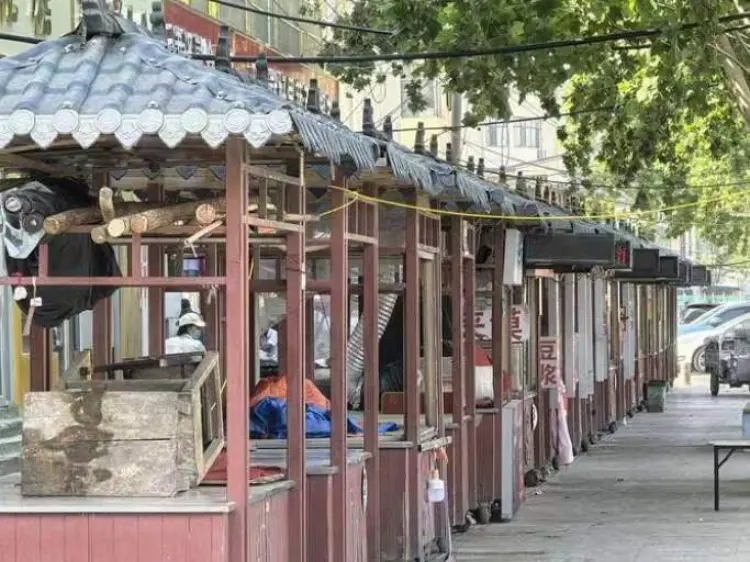 菏泽南站附近摊位,小贩大多已经离开。