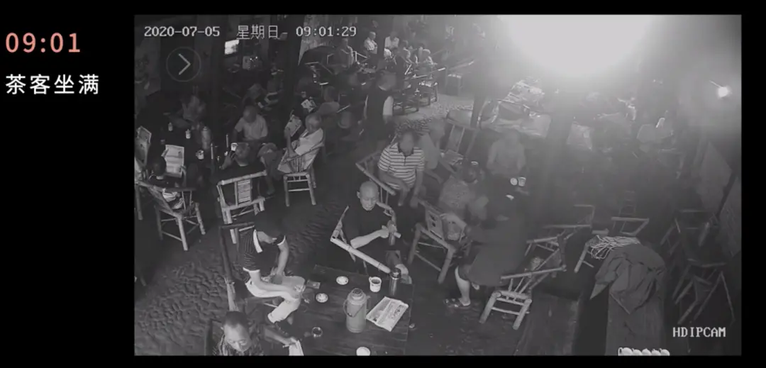 最后,我的分享是以观音阁老茶铺开始,也用观音阁老茶铺来做结束。我想分享观音阁老茶铺的一天,这是2020年7月5日,茶馆的一切活动都通过监控录像被记录下来了。记录人是著名的摄影家陈锦老师,他对茶馆特别热心,从80年代就开始拍摄茶馆。