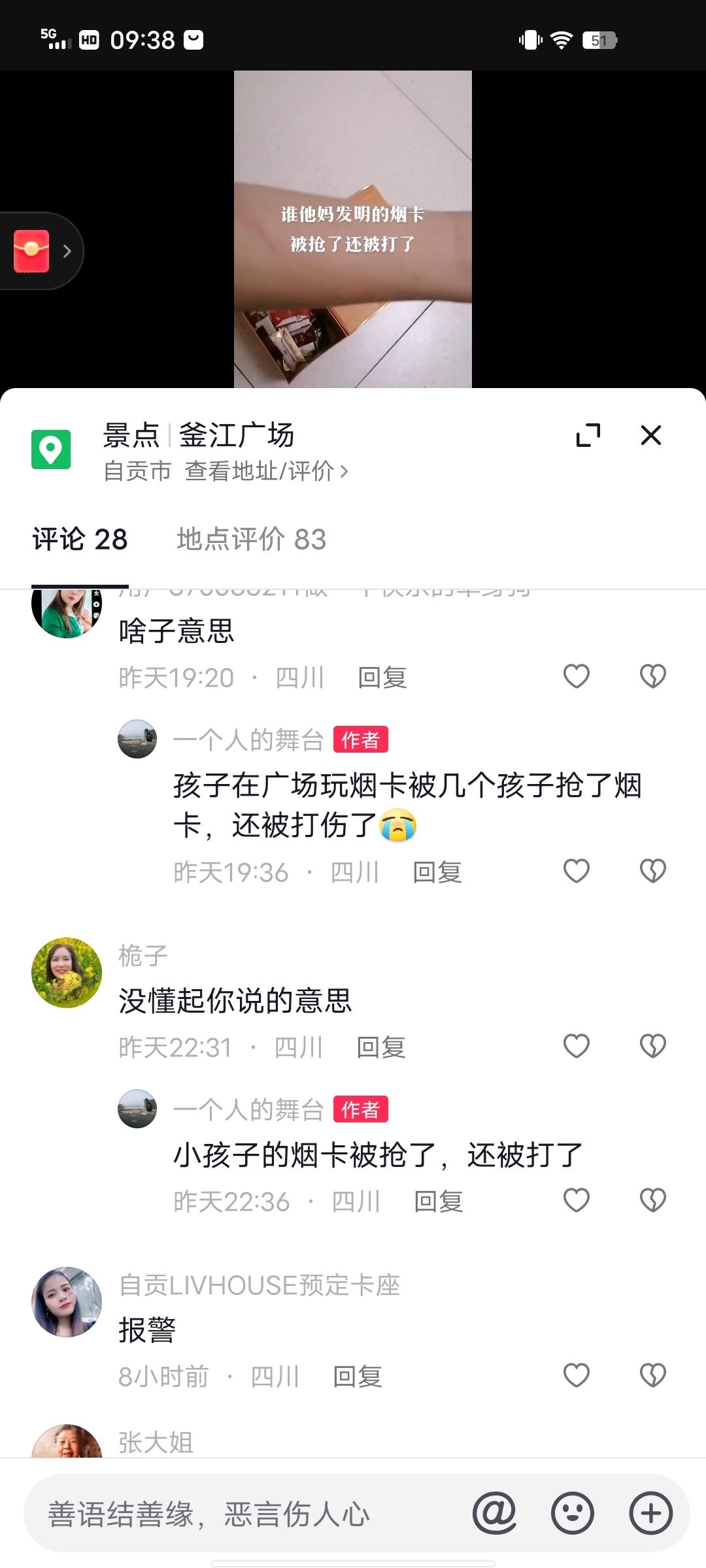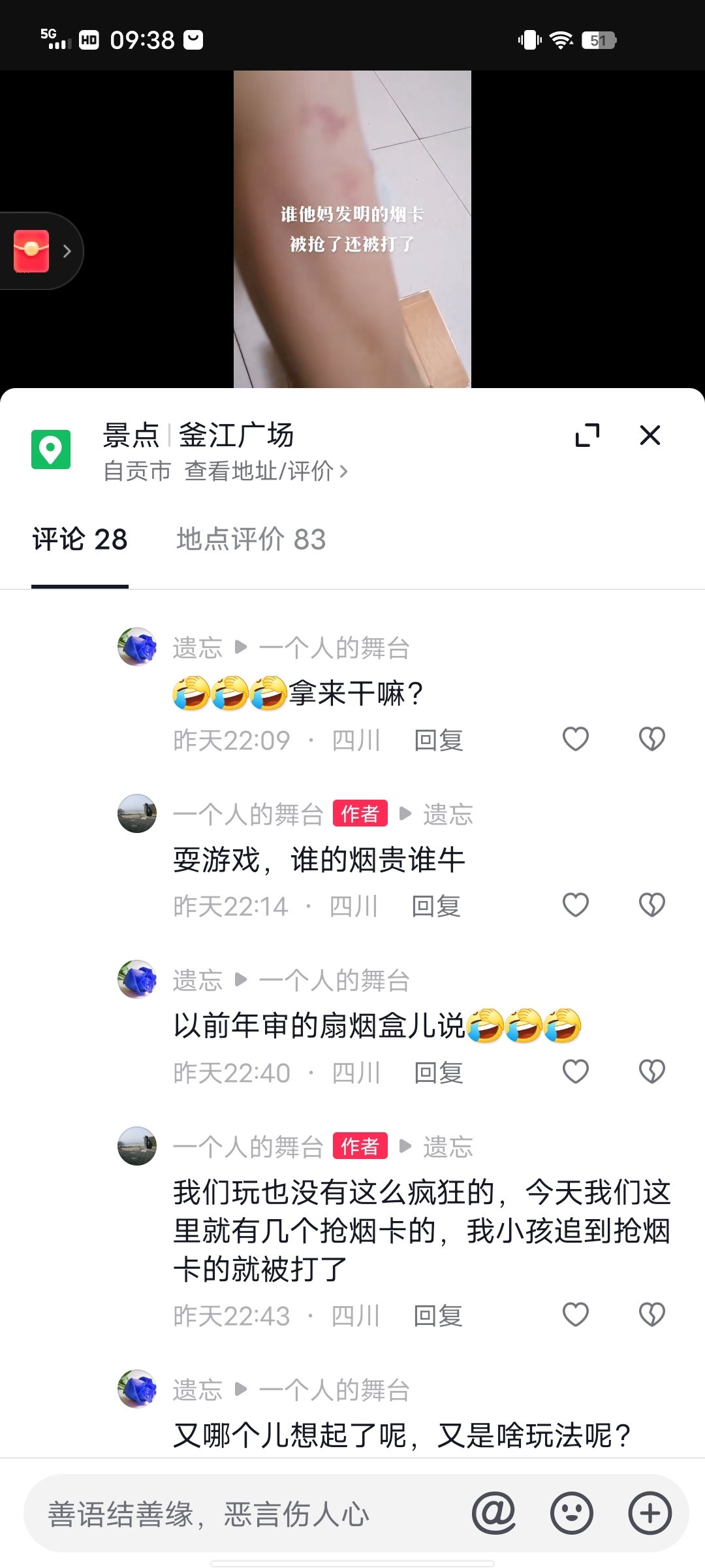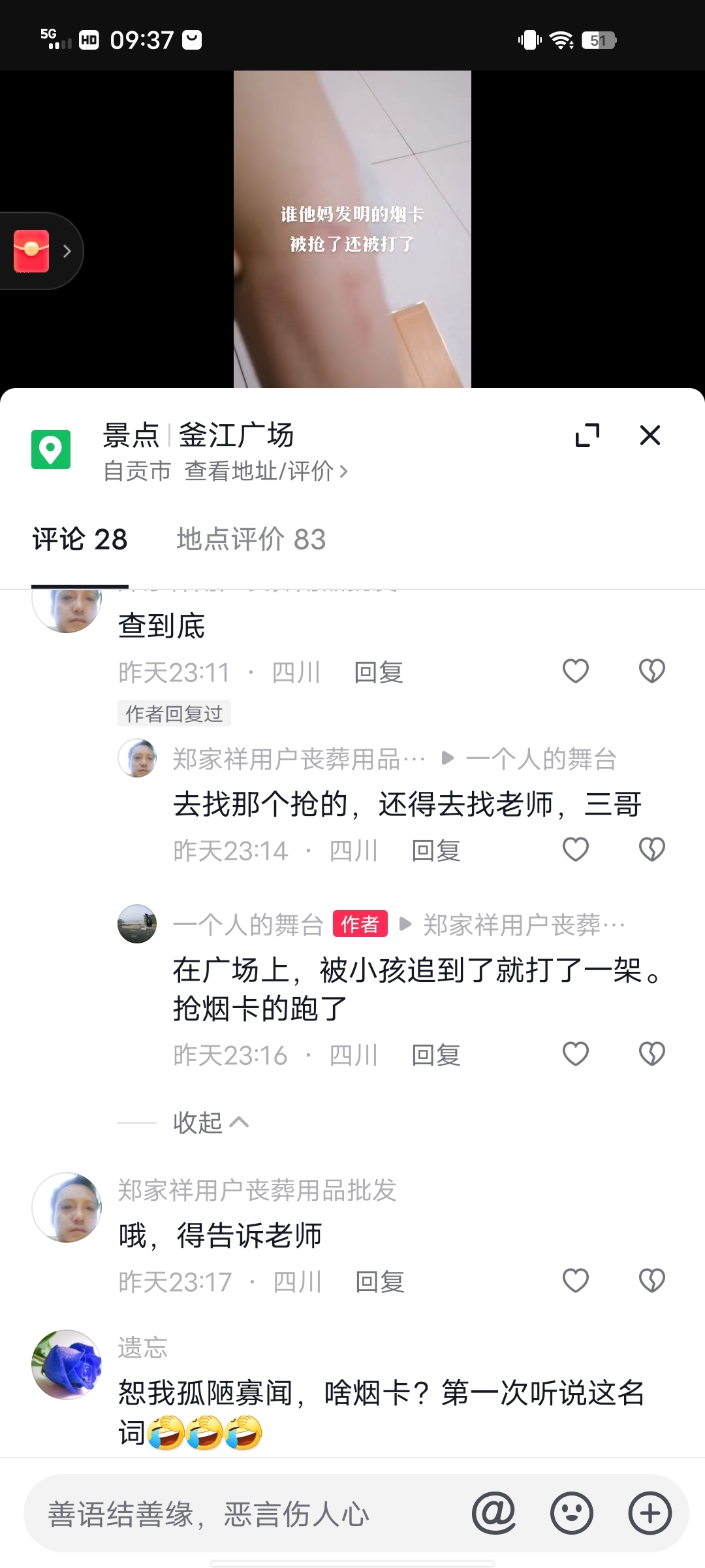“釜江广场发生抢烟卡打人现象十几次了!”转自抖音网友一个人的舞台