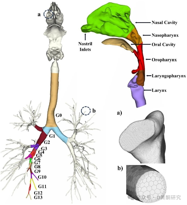 悉尼科技大学的研究人员开发了一种模型,追踪微塑料通过呼吸系统的流动路径。这项研究考虑了从鼻腔到支气管树的第13代(G13)的整个呼吸道。研究还模拟了不同的呼吸速率(慢、中、快)以及不同大小的塑料颗粒如何在呼吸过程中移动。