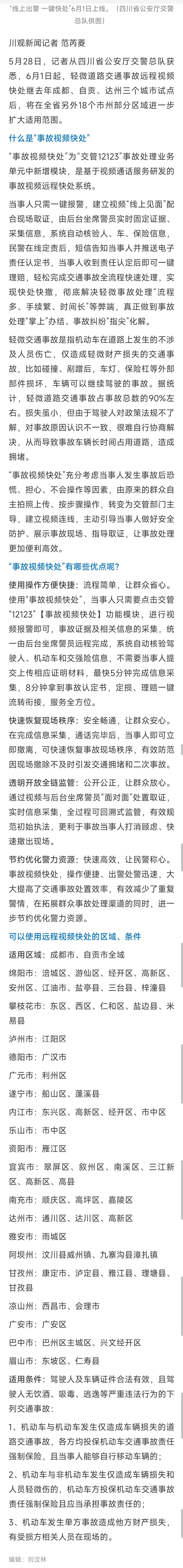 [盐都杂谈] @自贡车主 轻微交通事故“视频快处”,四川21市州6月1日上线