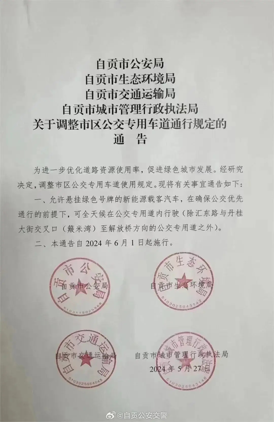 赞哪样?现在自贡的新能源车不在少数,一窝蜂的占用公交车道,如何能实现公交优先环保出行?有人说公交优先,对没错,但是公交优先是靠公交专道来实现的,公交车道都被新能源车占了,咋个来优先请问?其实,作为整个社会来说,救护车、消防车、警车、公交车可以共用一个专用通道来实现应急需求,现在在没有充分调研的情况下,贸然允许社会车辆占用公交专道是不明智的。