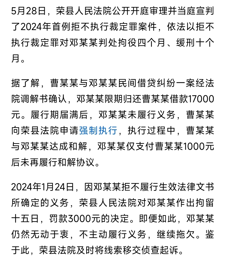 [盐都杂谈] 2024年荣县首例拒不执行裁定罪案件宣判