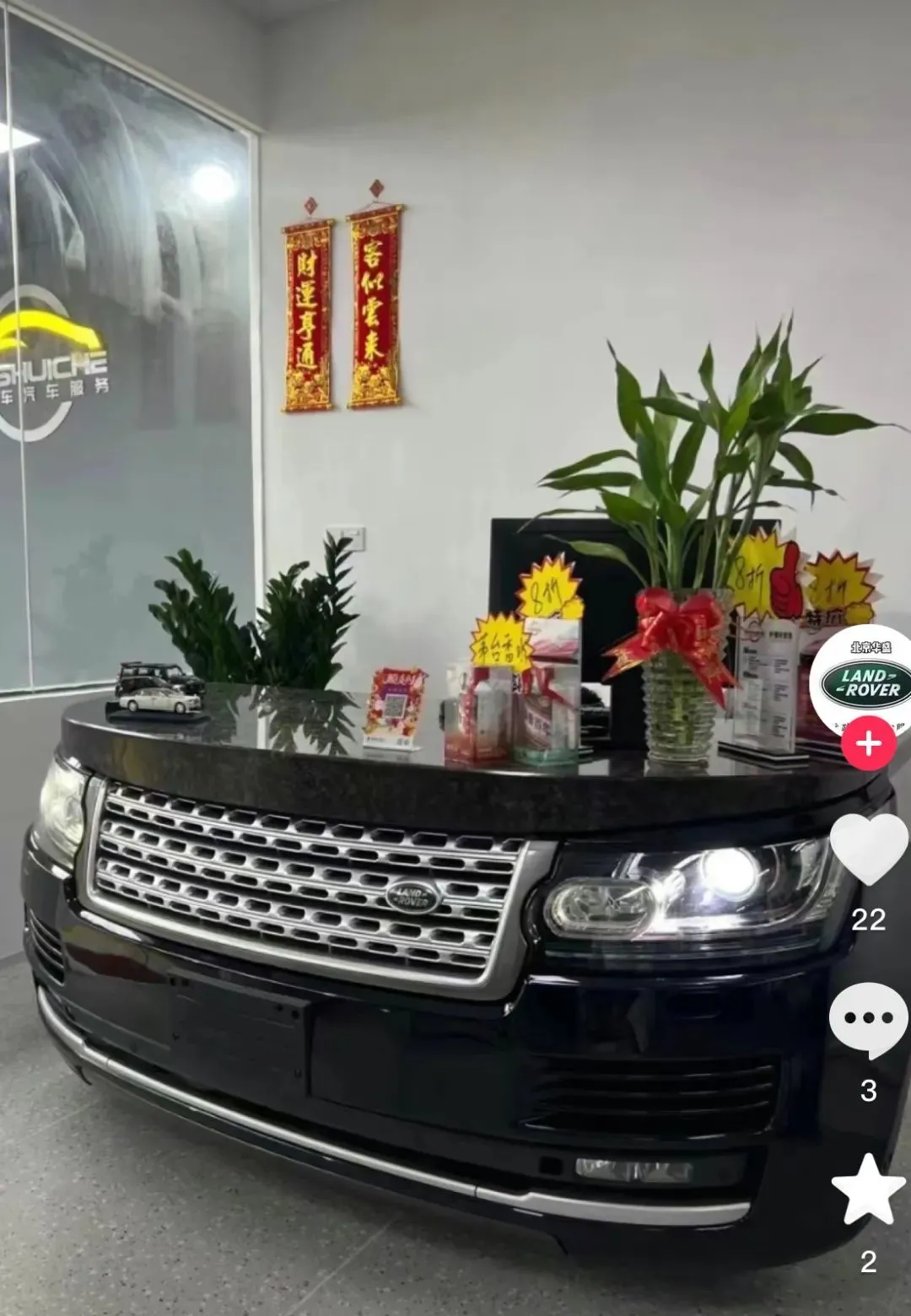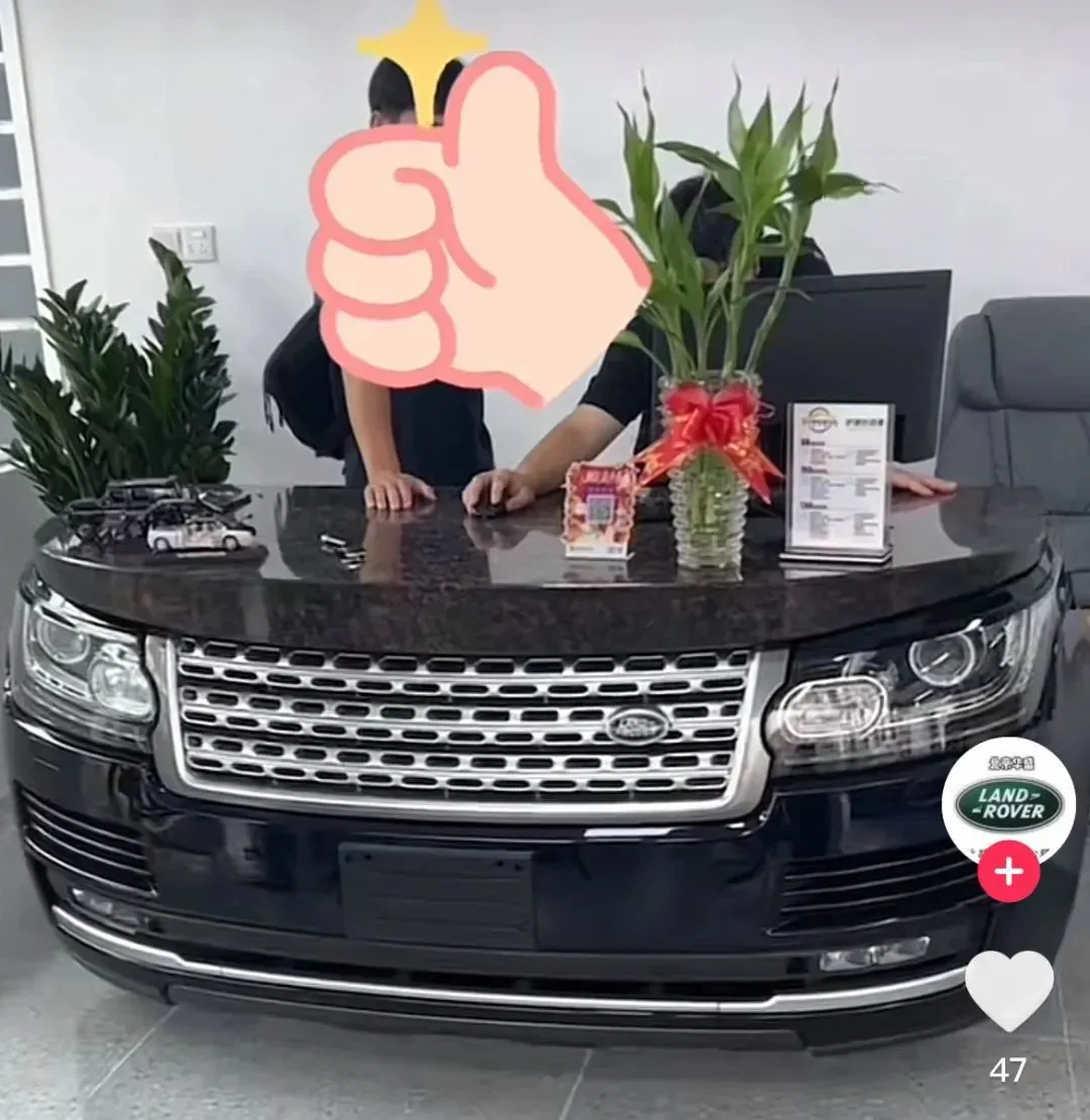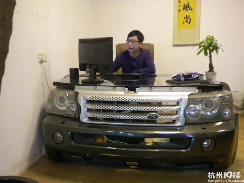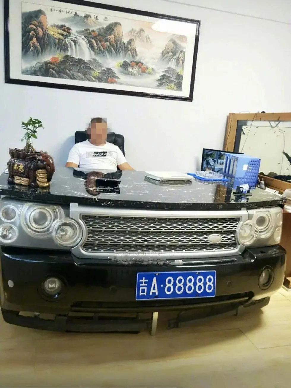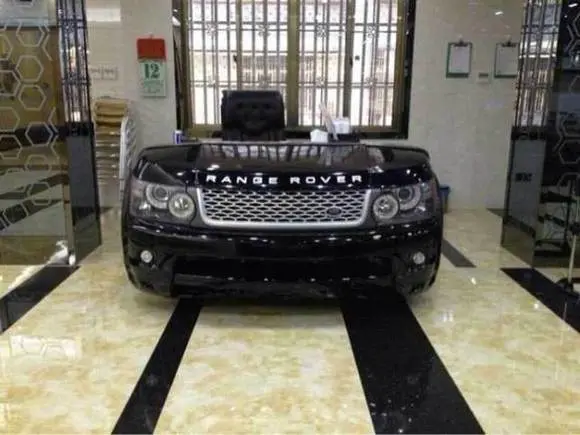 当同行还在执迷大理石还是黄花梨时,有的大哥已经把路虎的车头砍下来扛进了办公室。