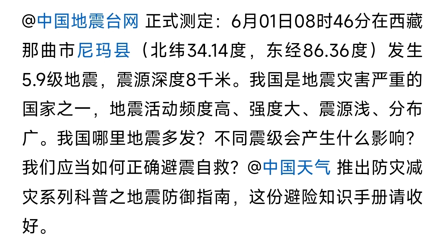 [盐都杂谈] 西藏那曲市尼玛县发生5.9级地震 一图掌握地震发生如何逃生?