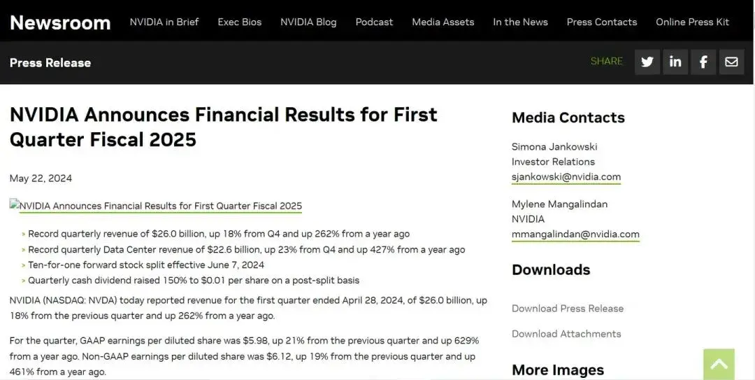 上周,英伟达发布了2025财年第一季度财报。营收260亿美元,同比增长262%;净利润148.8亿美元,同比增长620%。业界最关心的数据中心营收达到226亿美元,同比增长427%。这样的增长数据在全球来看都是非常炸裂的,即便是成长性独角兽有这个增速的都不多见,更何况是市值已经达到2.5万亿美元的巨无霸企业。这足以说明AI在当下有多么狂热,仿佛没有什么力量能阻止英伟达增长。