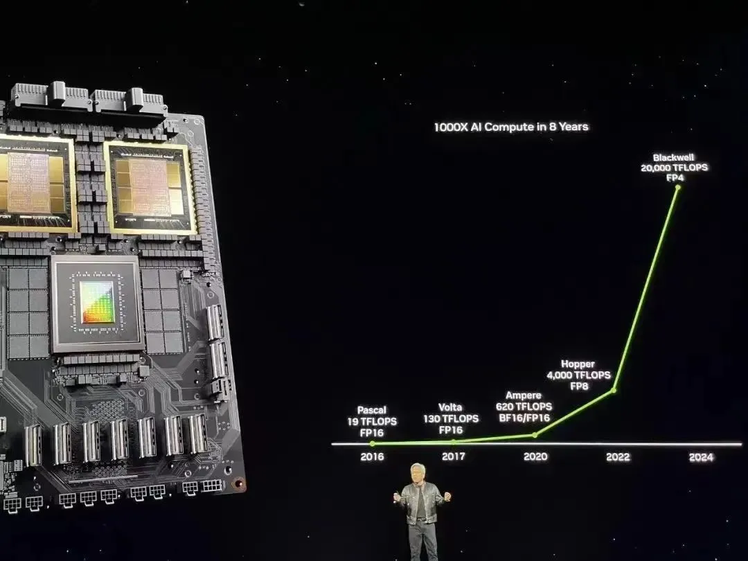 在此前的GPU技术大会上,英伟达更发布了新一代AI芯片架构Blackwell,性能为前一代Hopper架构的2.5-5倍,颇有进一步拉开和竞争对手距离的势头,这下应该没有人说英伟达是牙膏厂了。随后,在最近的财报会上,黄仁勋称,采用Blackwell架构的AI芯片已经小规模生产,预计二季度开始交付,三季度实现规模化交付,四季度数据中心就可以运行在新产品上,今年新产品就可以带来很多收入。