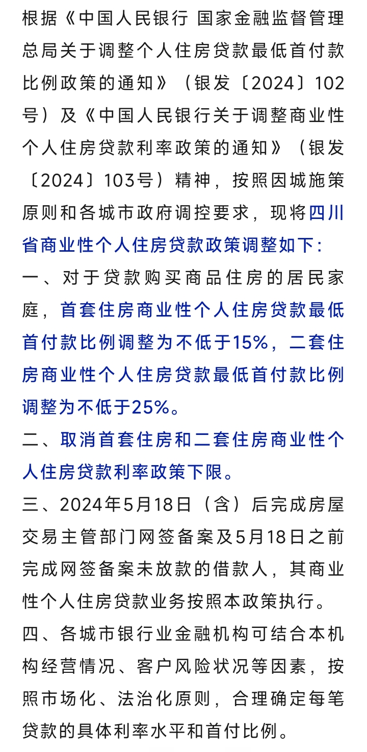 首套房首付不低于15%!四川省调整优化商业性个人住房信贷政策