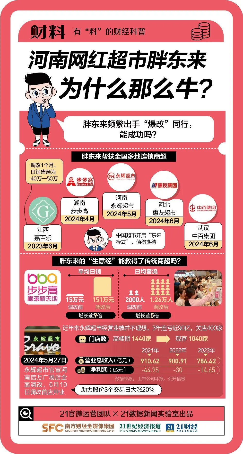 2024年来,胖东来因爆改帮扶步步高、永辉超市等线下商超频登热搜。今年5月,胖东来出手改造湖南步步高梅溪天地门店,让其平均日销售额暴涨逾9倍,从15万元飙升至151万元。