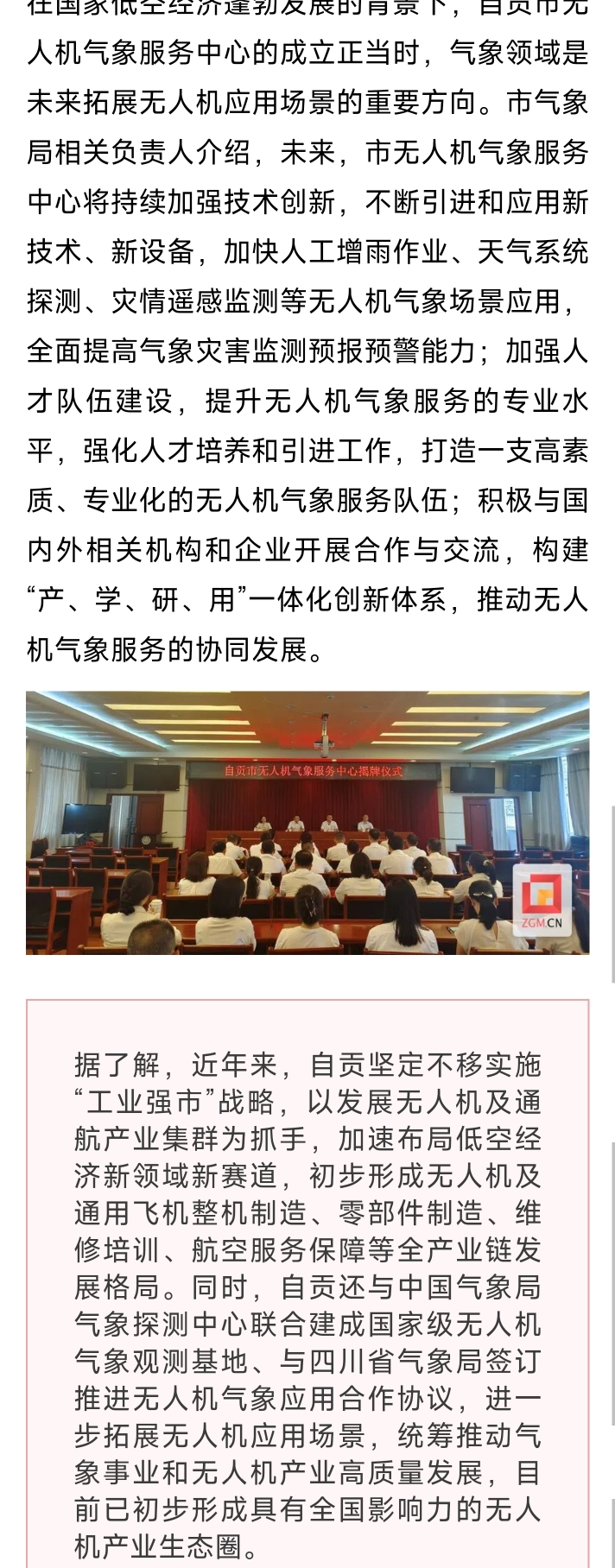 自贡巿无人机气象服务中心揭牌