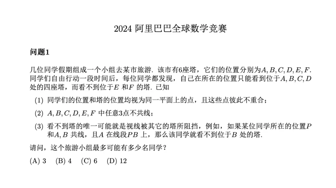 2024阿里巴巴全球数学竞赛题目。图源:阿里巴巴达摩院官网