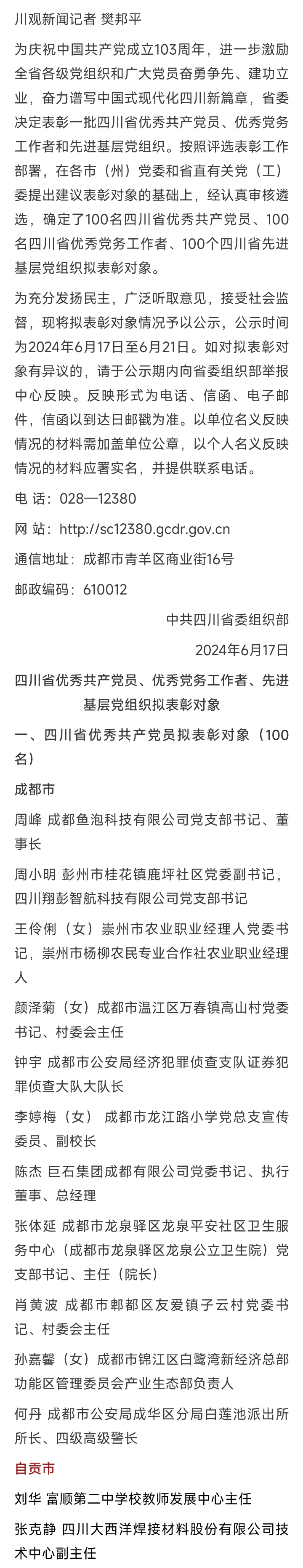(以上为部分拟表彰名单)