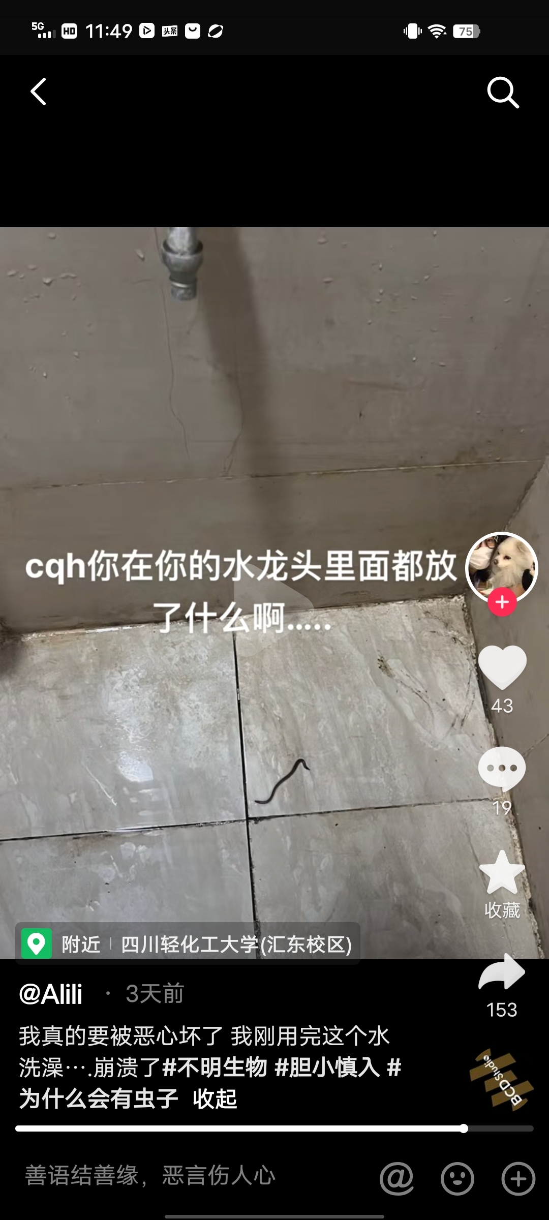 轻化工一学生水龙头里面放出一条蠕动的虫,太吓人了