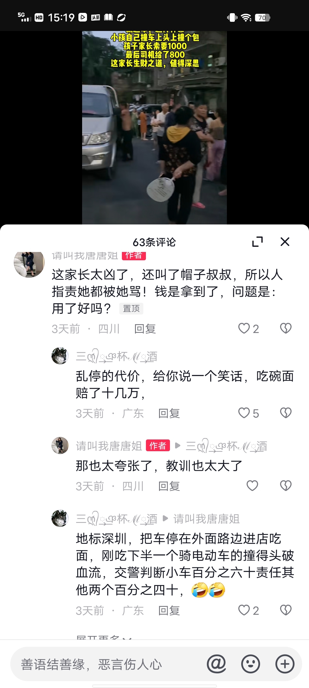 “孩子家长作为第一监护人,如果在家里摔一跤头上摔个包,家长会骂孩子顽皮,但在户外撞个包逮到机会就索赔,这是什么意思?今年大家挣钱都不易,我们需要一些正能量!”转自抖音网友请叫我唐唐姐