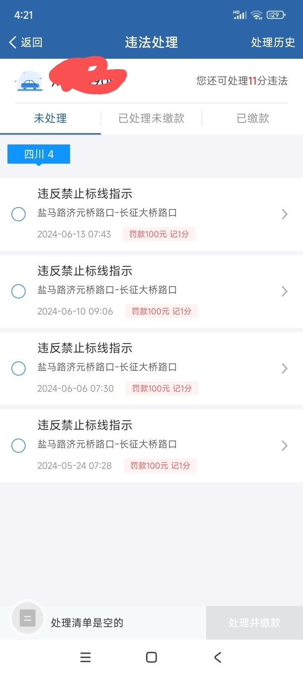 贡井邻里超市往平桥方向100米三叉路,不能压线,有人着了四个违章,时隔20天才收到短信