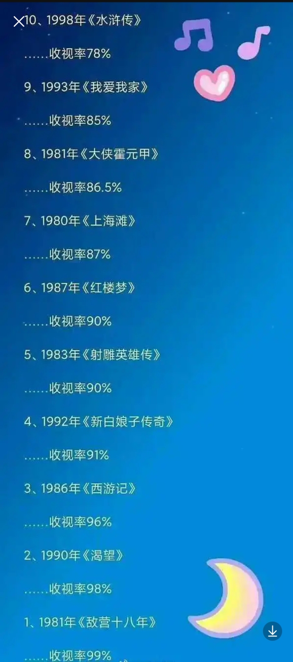 中国收视率前十名的连续剧