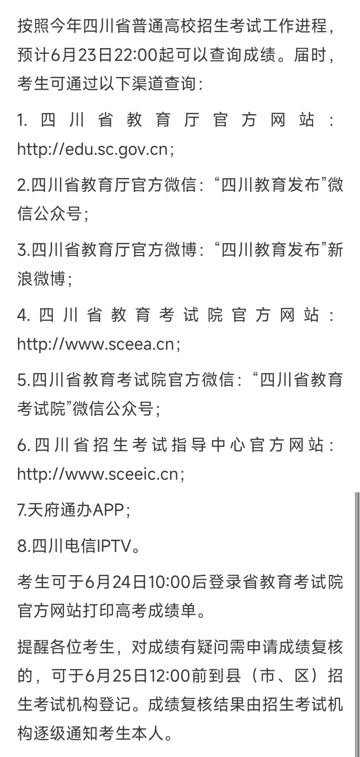 [盐都杂谈] @自贡考生 6月23日22时起可查!四川省2024年高考成绩查询方式公布