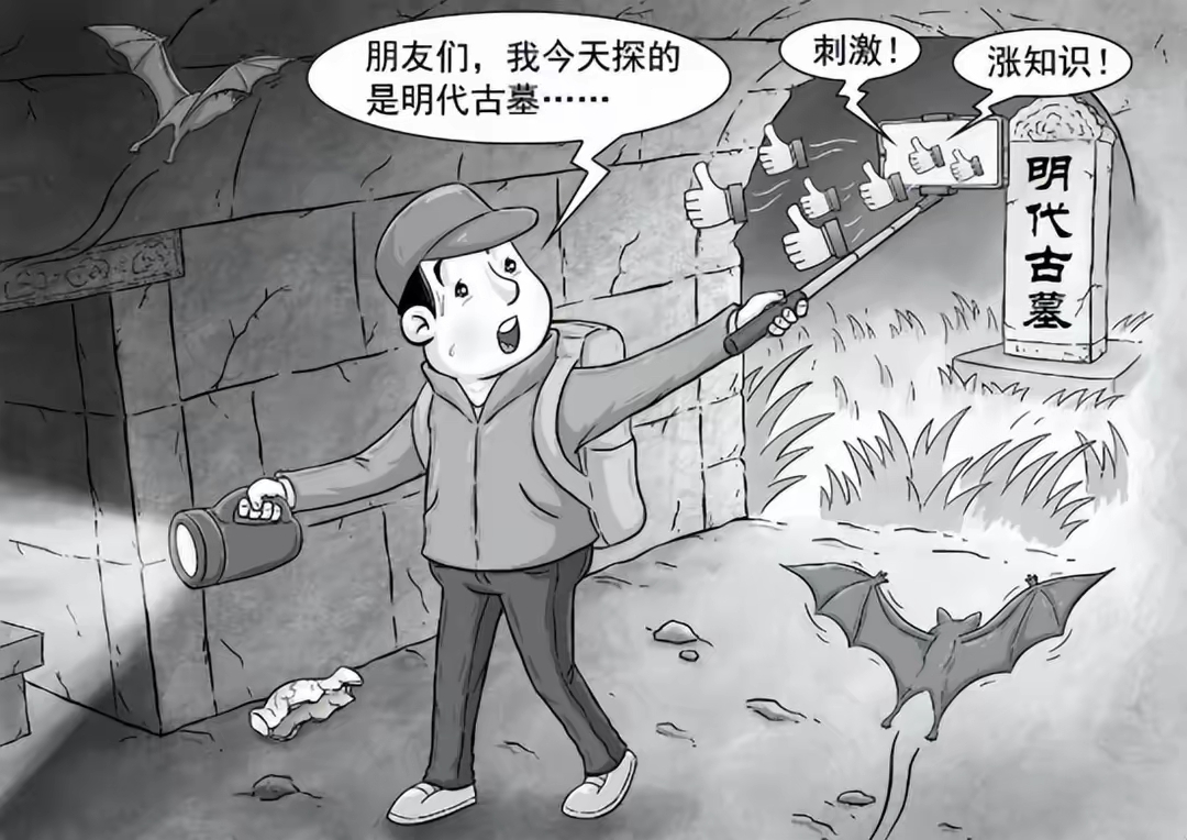 有的博主在“探墓”过程中,以夸大性、错误性解读吸引网民;有的博主无视警告,冒险进入危险区域寻求新奇;有的博主为制造刺激,甚至取出死者尸骨任意摆拍……流量之下的种种丑态,不仅误导公众,更扰乱网络生态,严重违背公序良俗。