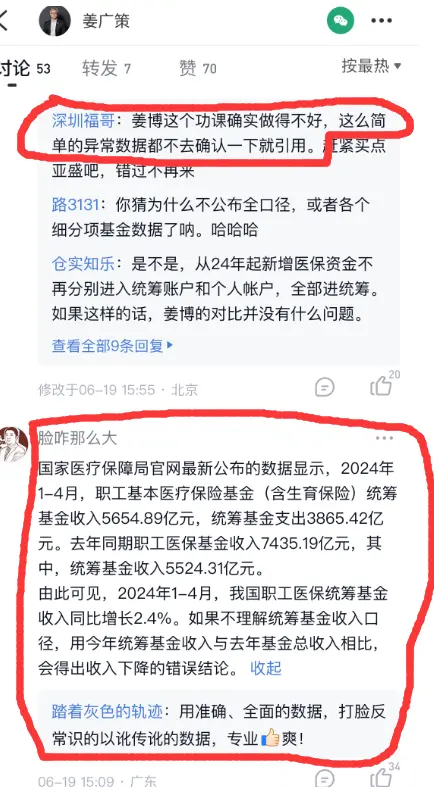 真相已水落石出——医保基金收入下降23.94%的说法,其实是因为没有理解统计口径变化,错误计算导致的!