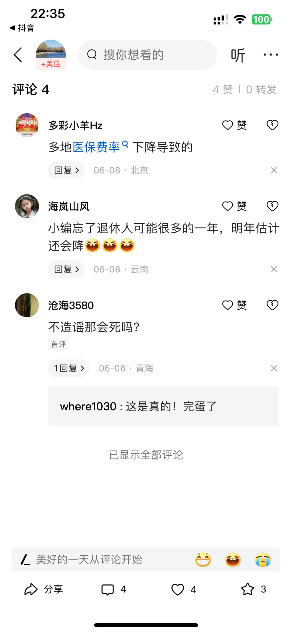 这篇帖子下面,有网友评论称:“多地医保费率下降导致的”“明年估计还会降”……