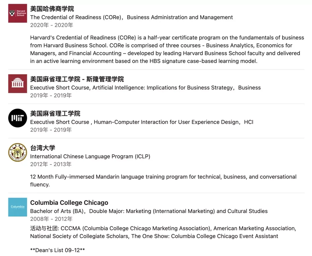 在2019年到2022年,疫情最为严重的时候,Spencer在美国多个知名大学读MBA或者短期课程,学习人工智能、人机交互以及商学院课程,同时也在多个科技类公司担任产品战略顾问,似乎在为进入英伟达做准备。