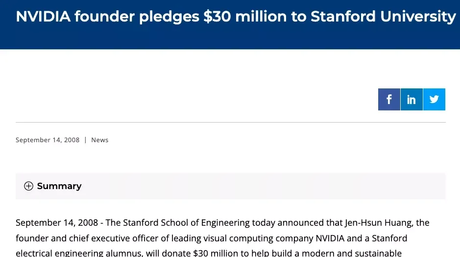 最广为流传的说法是,2008年黄仁勋给自己的母校斯坦福捐了一栋大楼,那一年黄仁勋的儿子Spencer也刚好要上大学,但是Spencer和妹妹并非顶尖名校毕业,尤其是妹妹Madison大学选择读烹饪学校,学做菜、烘培、酒水......只在自己感兴趣的领域专研。