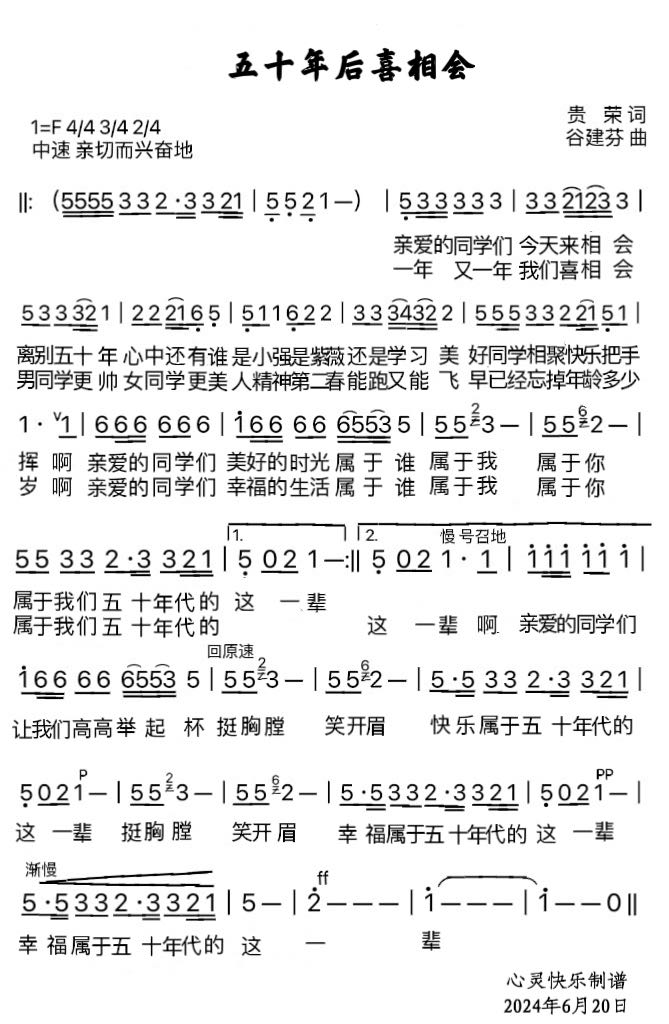 今年,初中毕业50周年了,历历往事就像在昨天。度尽劫波同学在,久别重逢夕阳红。怀着激动的心情,填写了一首歌词,以示纪念。