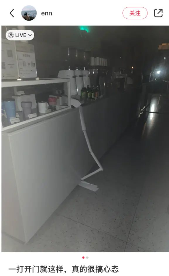 按照平均每杯15元的价格来算,这名员工一天最多要做300多杯咖啡,还需要同时承担负责库房盘点、门店清理、点单服务等其他工作。 某咖啡培训帐号估算,一个咖啡师在8小时制作80-100杯咖啡,就已经算是比较饱和的工作量,而Manner超了两倍。 去网上搜索“Manner工作强度”,可以看到无数店员们的“血泪史”。 视频中女店员那句“我没吃早饭”,很可能是他们的常态。 某位Manner咖啡师在网上晒出自己早上来开门的场景,虽然店内灯都还黑着,但接单机器里已经源源不断吐出网络预订单,多到垂在了地上。
