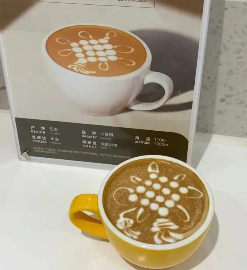 另一个折磨Manner咖啡师的工序,要属拉花。 “拉花最好看的连锁咖啡店”,是很多消费者去买Manner的理由,却也是本就忙到崩溃的咖啡师们的噩梦。 一杯咖啡的制作时间本来就已经压缩到了3分钟以内,还得花至少几十秒做复杂的拉花。 去年Manner的“圣诞树拉花”在社交平台上很火,但有不少网友慕名去尝试后,吐槽店员给自己做得拉花很丑很敷衍。 当时就有咖啡师出来诉苦,说店里单子太多,自己的技术又不太熟练,实在无法快速做出细致的拉花。