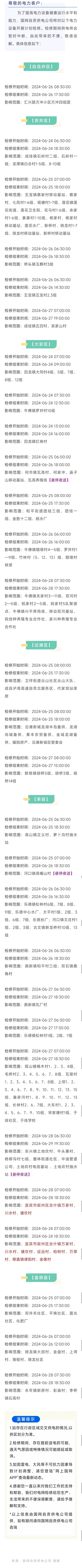 [盐都杂谈] 6月24日~6月29日,自贡这些区域检修将停电,有你家吗?