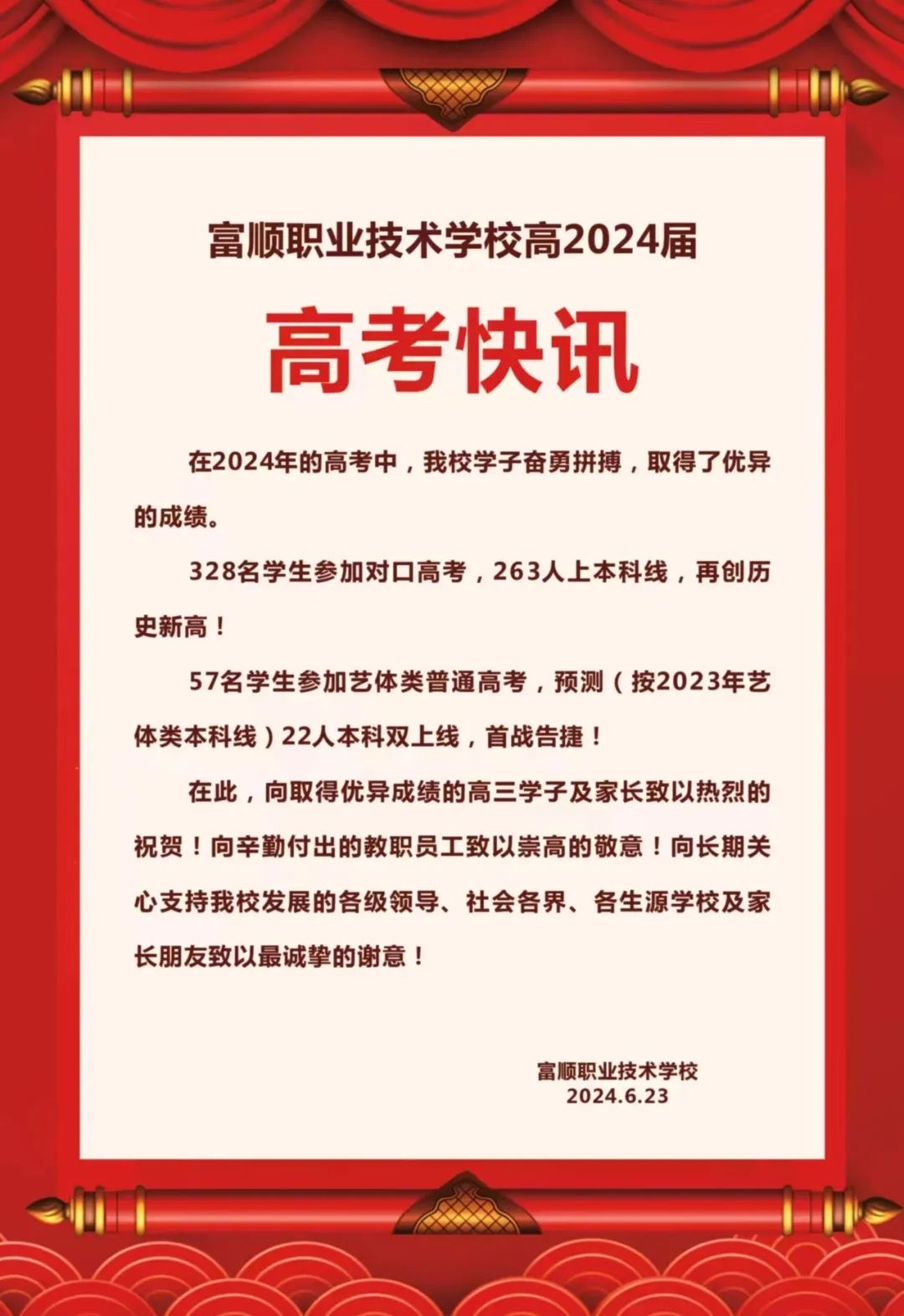 [盐都杂谈] 重磅!清华、北大预测上线5人!富顺县2024年高考成绩公布