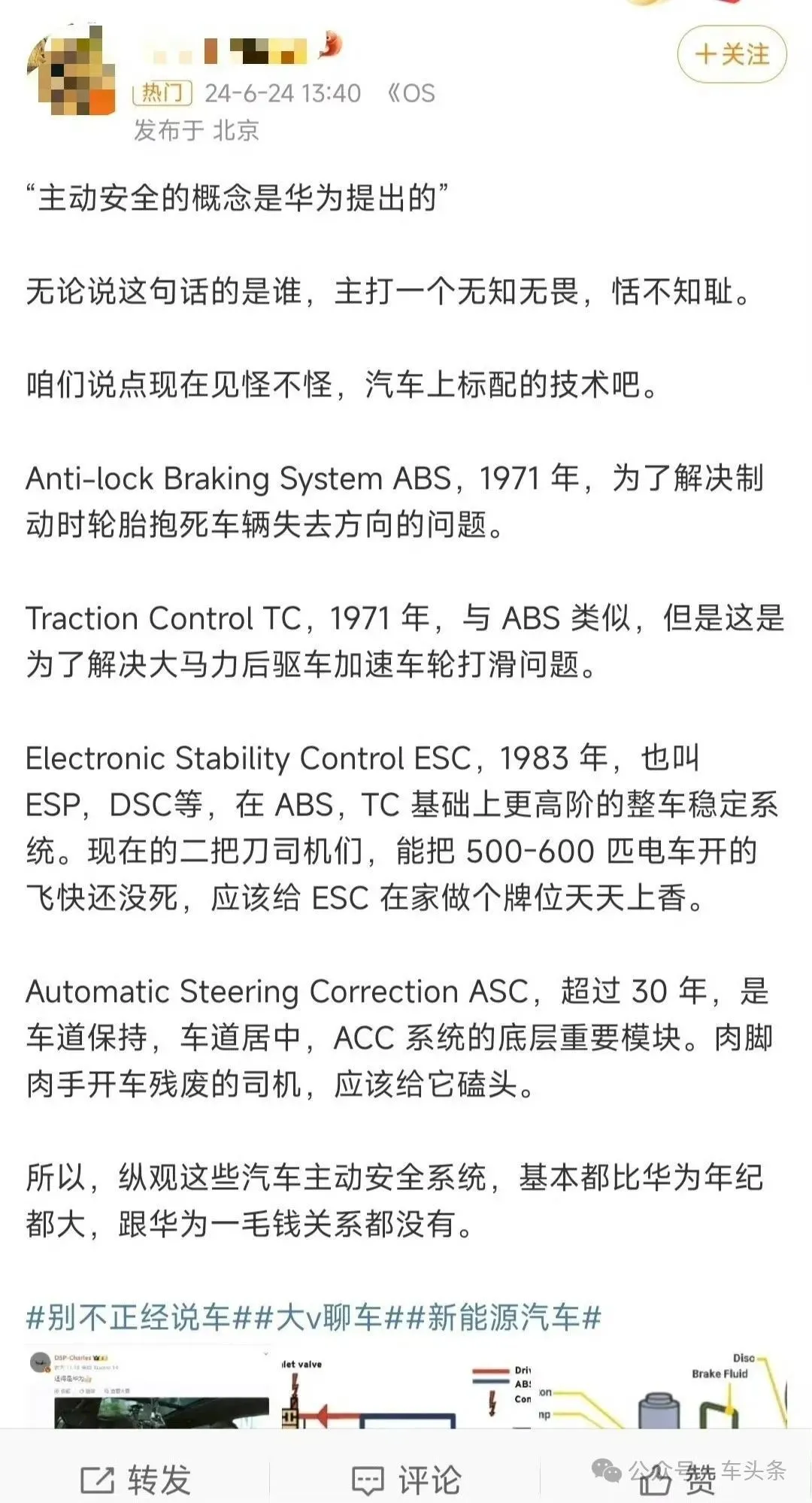 很多网友和博主纷纷表达了对余承东说法的质疑,并且科普“主动安全”的概念,简而言之就是“主动安全”这个概念并非华为“先提出”。