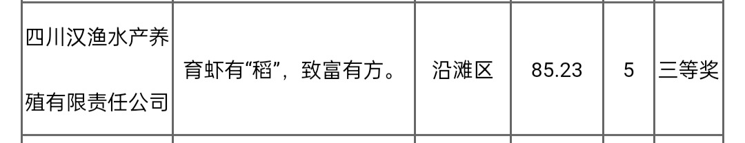 [盐都杂谈] 四川汉渔水产养殖有限责任公司项目获三等奖