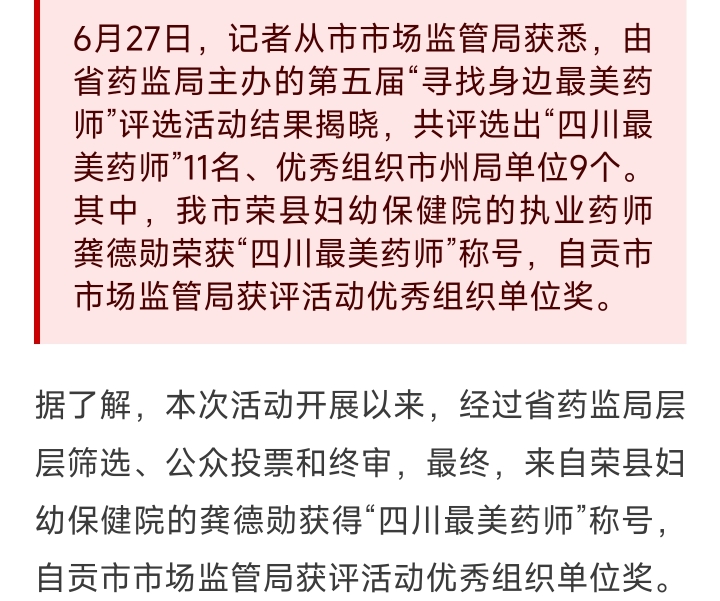 [盐都杂谈] 自贡市1人1组织上榜!四川省“寻找身边最美药师”评选活动结果揭晓